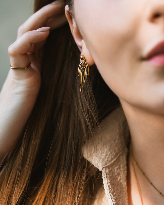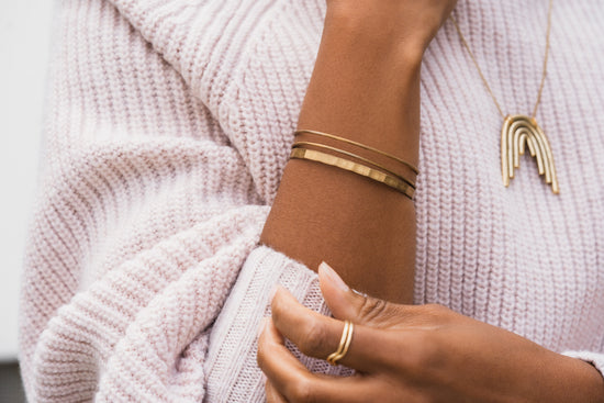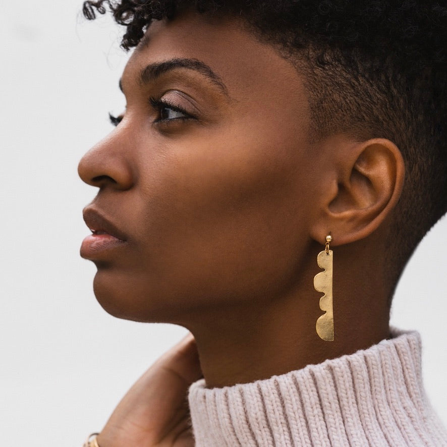 We are a small, woman-owned and -operated jewelry line that uses recycled materials sourced from fast fashion manufacturers. Metals are melted down and repurposed into thoughtfully, beautifully designed pieces to keep waste out of landfills and give old adornments new life.