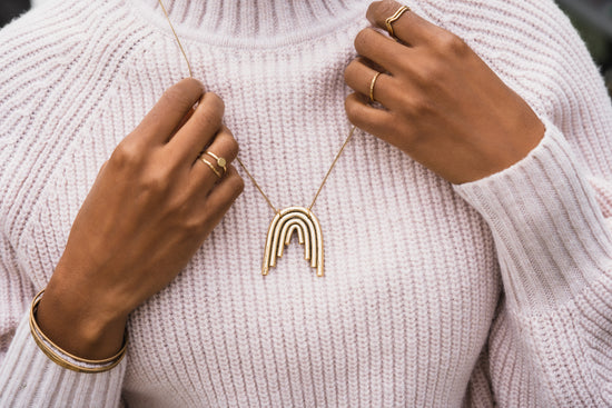 Tilly Doro believes in thoughtful, responsible design with purpose. We use deadstock material and repurposed components to ensure less waste ends up in landfills. New pieces are designed and hand fabricated from recycled metals we melt, cast, and coat in 24k gold plating—all in the U.S.