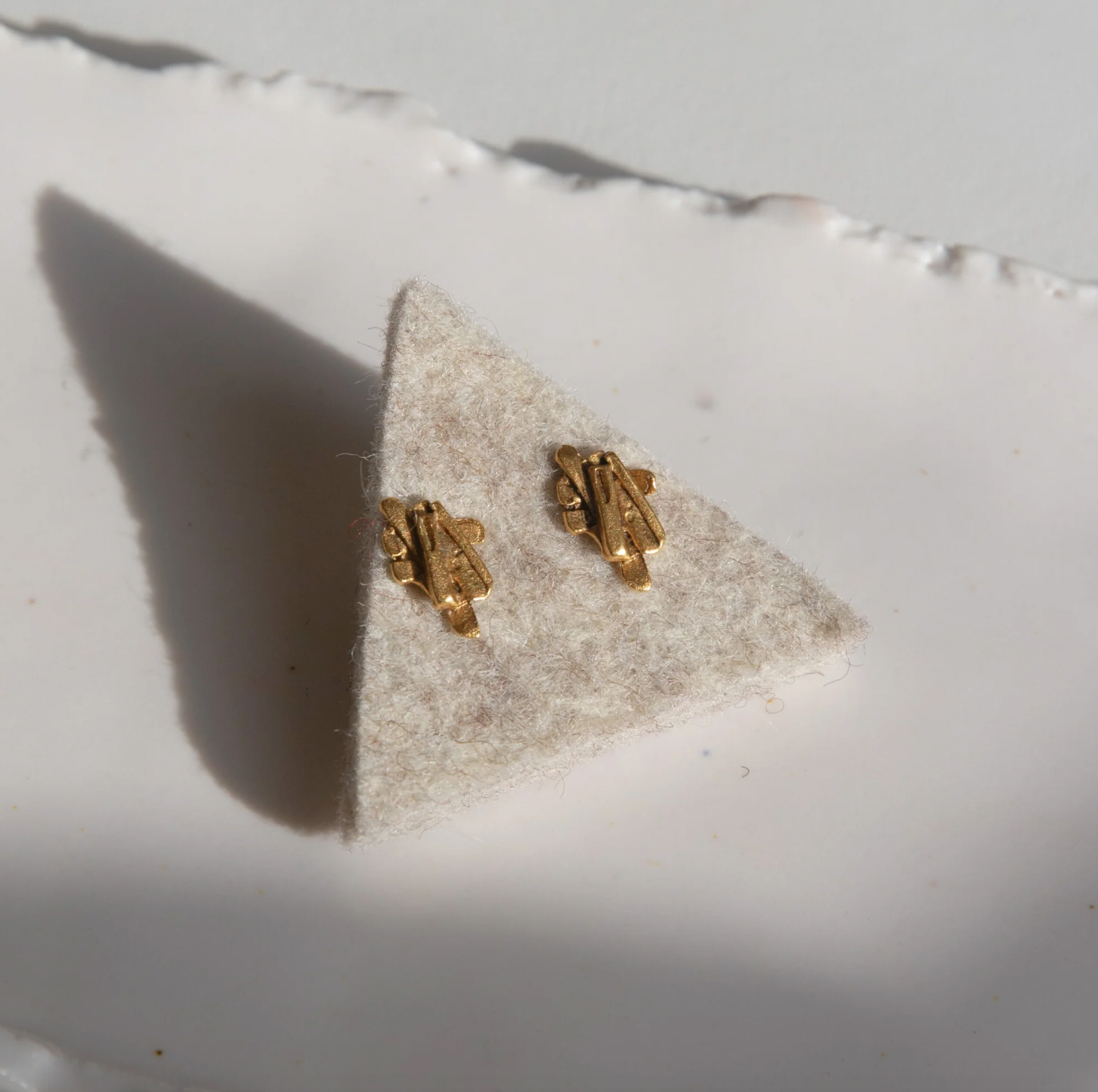 The Bar Stack studs are first hand formed in wax and then cast in recycled metal and plated in 24k gold.