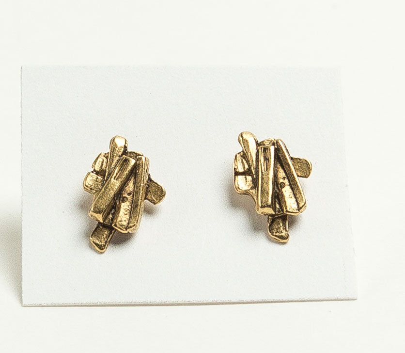 These lovely detailed earrings feature layers of small golden sticks piled together adorning the ear with grace and style. Lightweight and effortless.