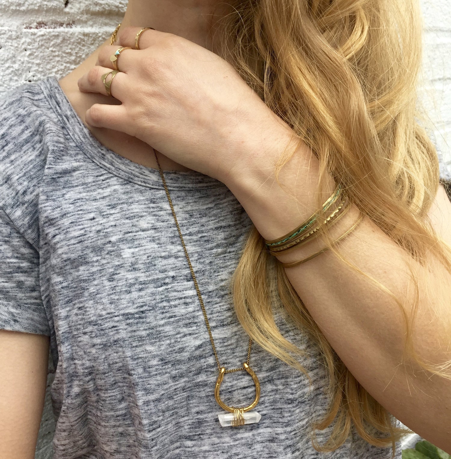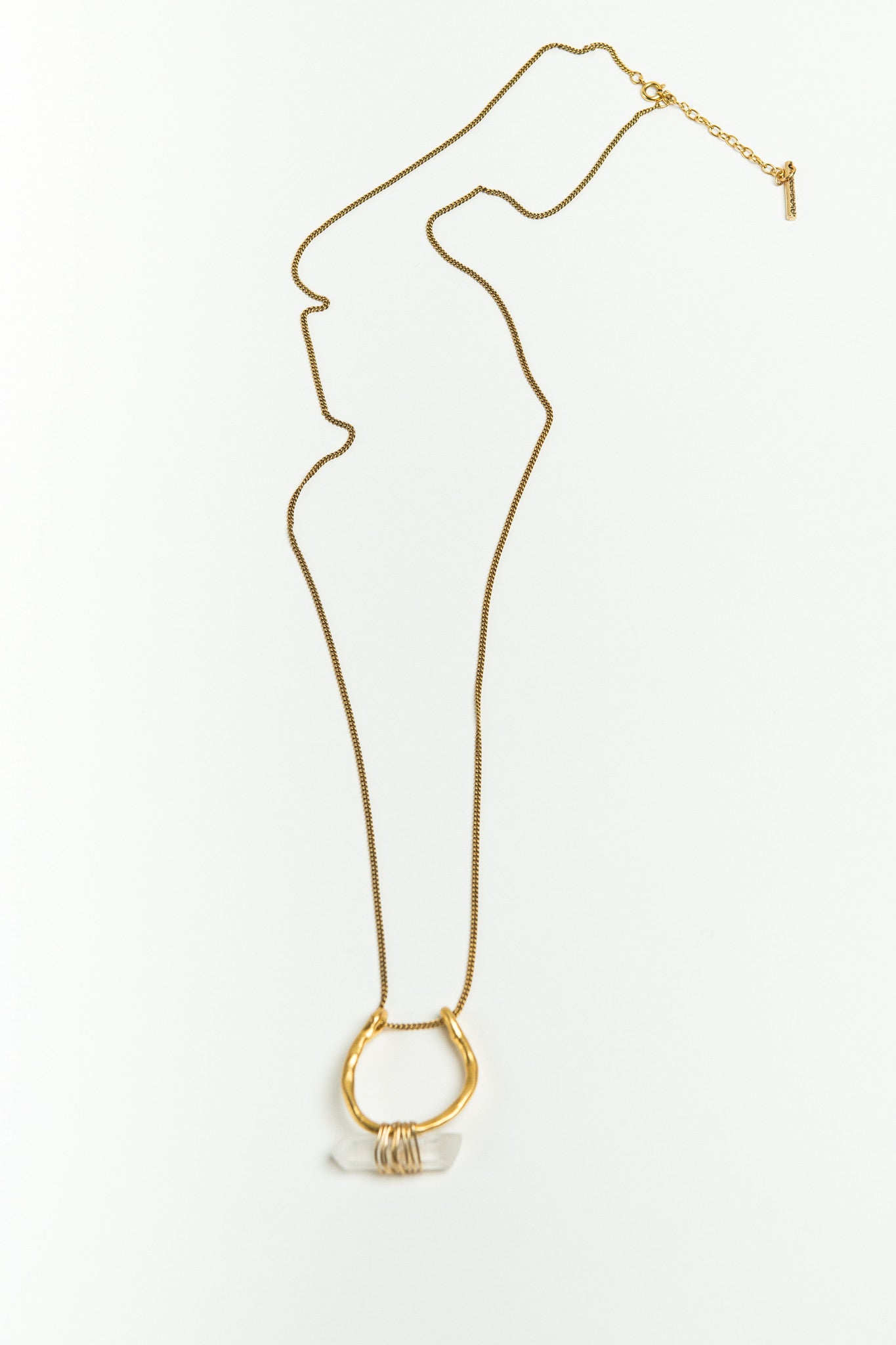 Hand fabricated gold plated pendant with wrapped Crystal on gold plated chain