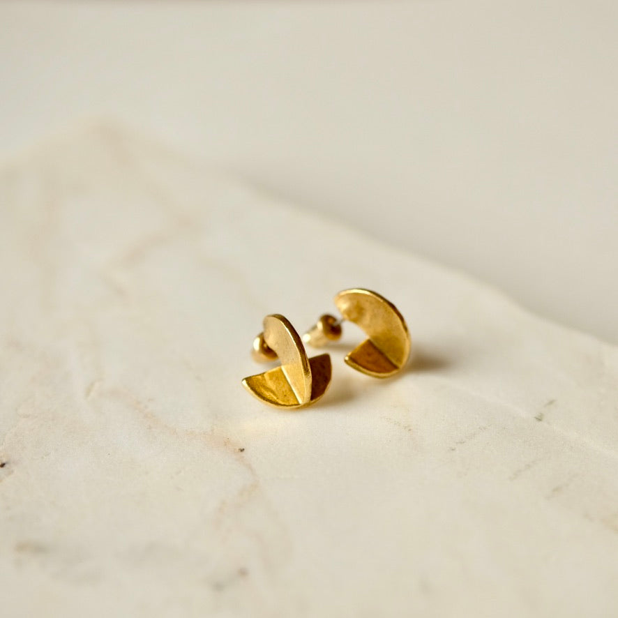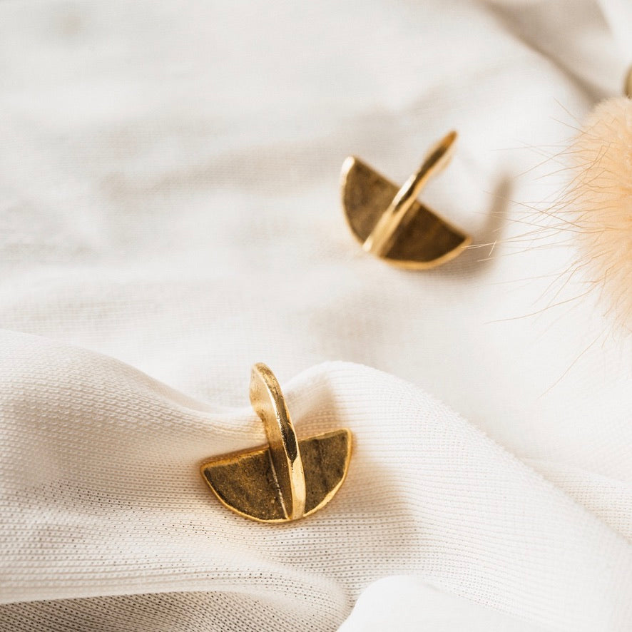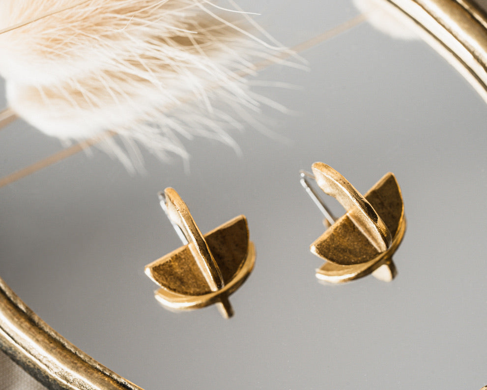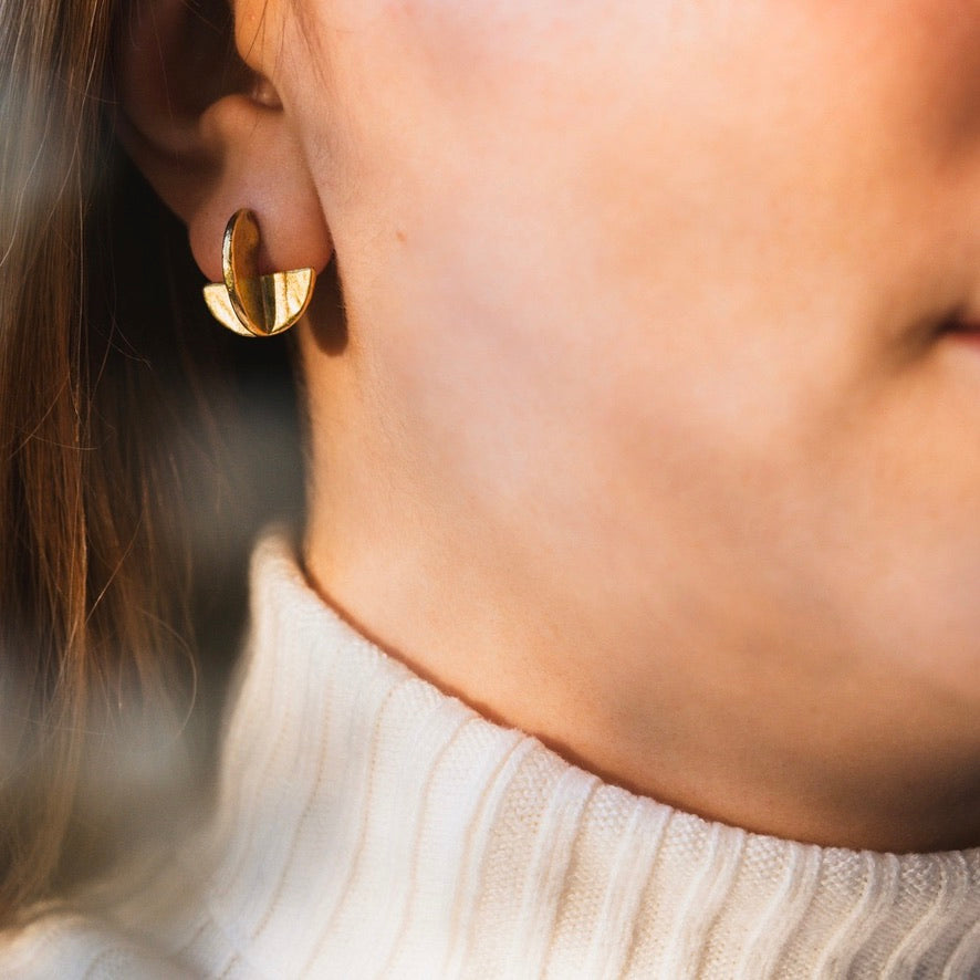 These hand fabricated, overlapping crescent shapes adorn the ear with grace and style. Lightweight and effortless.