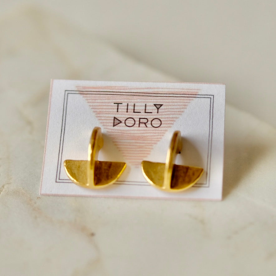 Measuring 3/4" diameter, they are made with 24k gold plated brass and secure, bullet clutch backings. Stainless steel stud earring posts.