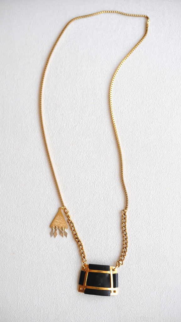 This cool leather trapezoid with a gold frame was once a rad 80's shoe clip.