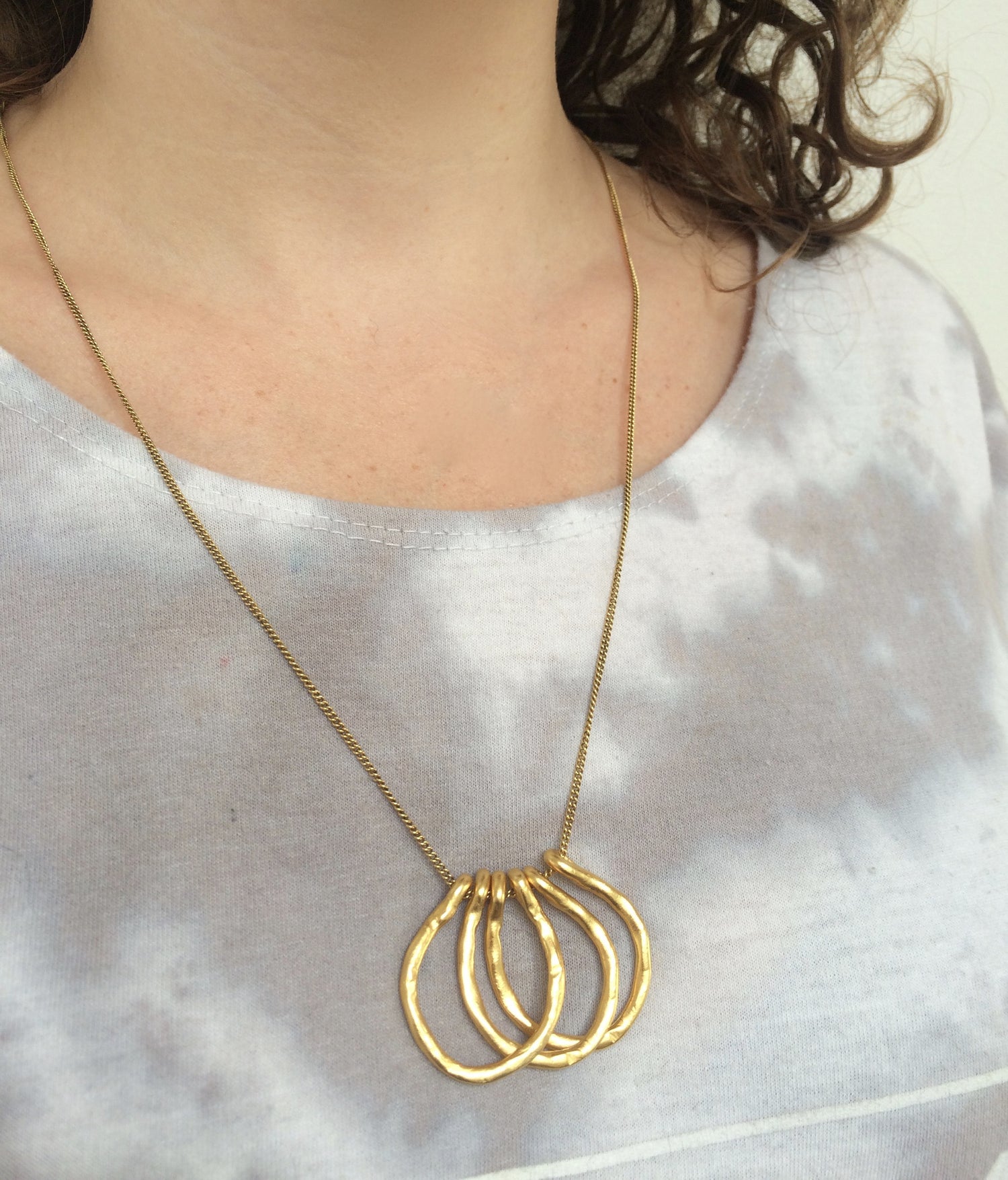 Hand fabricated gold plated pendant on a gold plated chain.