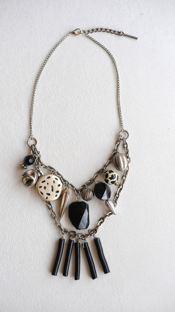 A balance of chaos gives this necklace a strong edgy feel, sure to make a statement with any outfit.