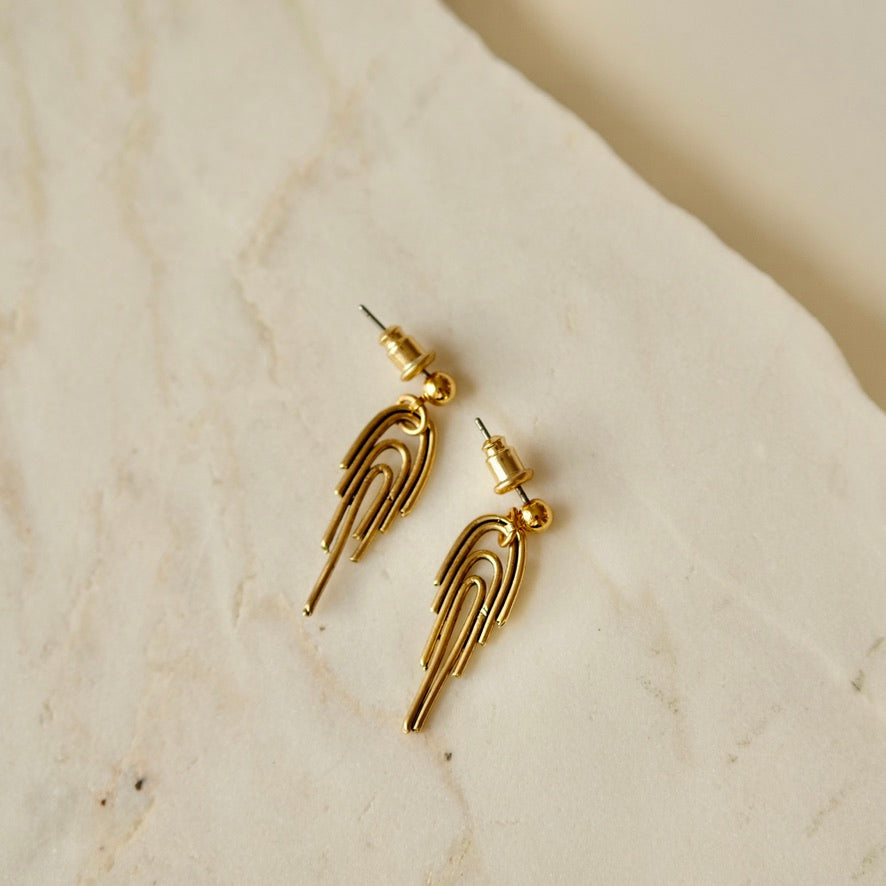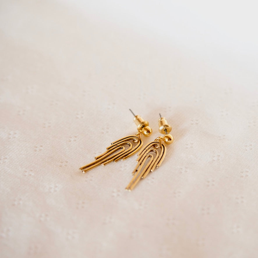 These earrings feature textured delicate arches arranged like a rainbow for a playful yet elegant look. handcrafted and lightweight