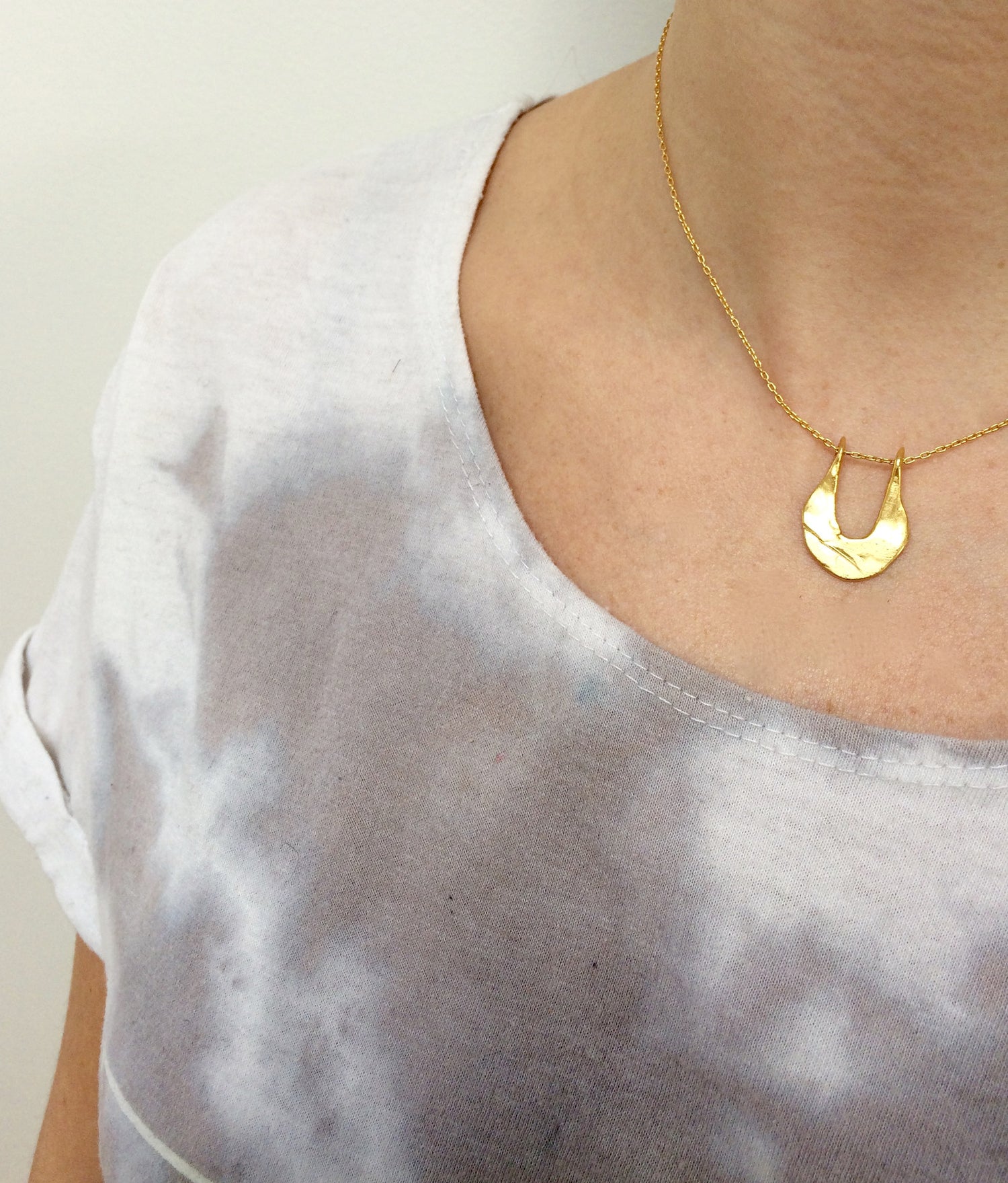 A lovely open petal shapes hangs on delicate chain. First formed in wax and then cast in metal making it's shape organic and unique. Beautiful on it's own or layered