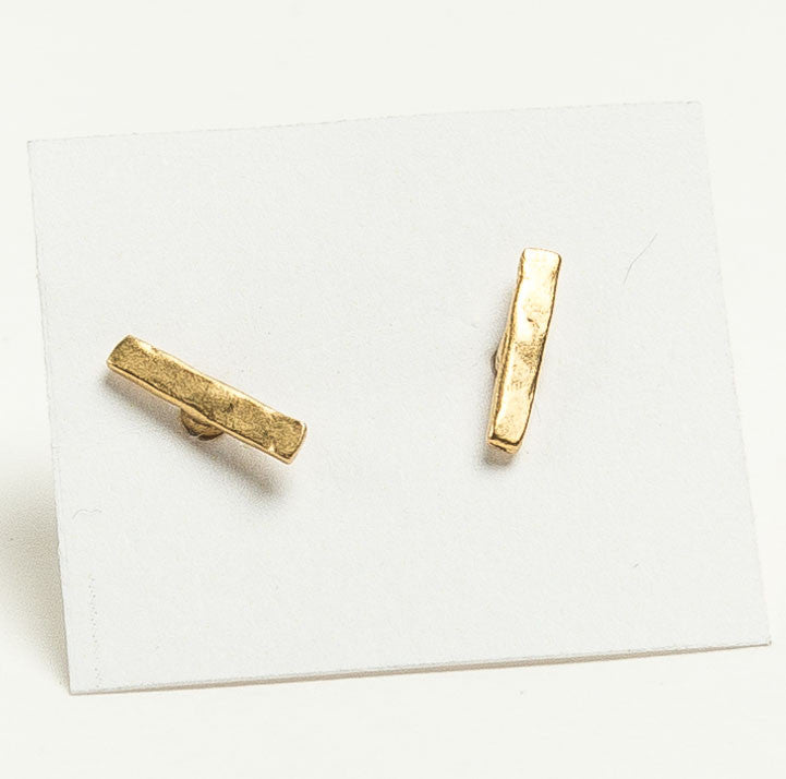 The definition of understated style. Our hand fabricated small textured bar stud earrings are perfect and simple, bar none.