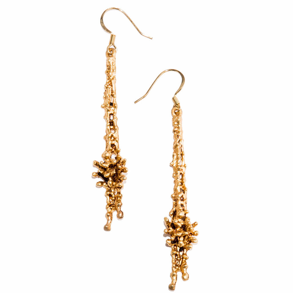 Hand-cast from vintage earrings inherited by the designer’s mother, this unique pair have the appearance of small bursts of light.